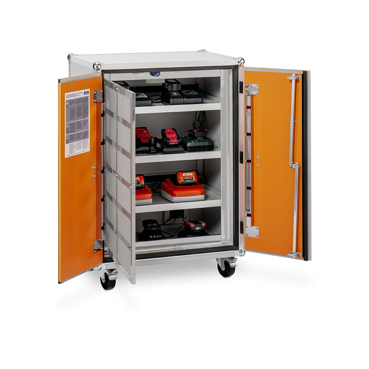 Feuer- und Explosionswiderstandfähiger Sicherheitsschrank, der speziell zur Lagerung und Laden von Lithium-Ionen-Batterien geeignet ist. Getestet und geprüft nach VDMA Einheitsblatt 24994:2024-08 sicheres Lagern und Laden von Lithium-Ionen-Batterien bis 3 kWh – ideal für Anwendungen mit hohem Energiebedarf. höchste Sicherheit im Brandfall – hält einem Batteriebrand stand und gewährleistet kein Austreten von Flammen und Funken. modulares Baukastensystem – kombinier- und stapelbar mit weiteren lockEX-Baureihen für maximale Flexibilität und Erweiterbarkeit. patentrechtlich geschütztes Druckentlastungssystem lockEX propagationsverhindernde Lagerebenen – verhindern die Ausbreitung von Bränden zwischen einzelnen Batteriemodulen.