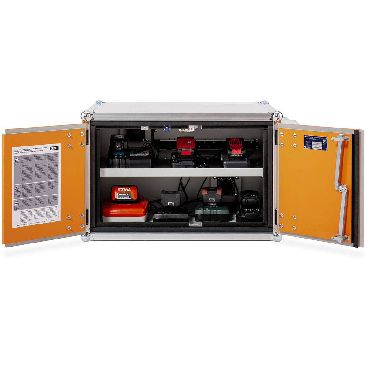 Feuer- und Explosionswiderstandfähiger Sicherheitsschrank, der speziell zur Lagerung und Laden von Lithium-Ionen-Batterien geeignet ist. Getestet und geprüft nach VDMA Einheitsblatt 24994:2024-08 sicheres Lagern und Laden von Lithium-Ionen-Batterien bis 3 kWh – ideal für Anwendungen mit hohem Energiebedarf. höchste Sicherheit im Brandfall – hält einem Batteriebrand stand und gewährleistet kein Austreten von Flammen und Funken. modulares Baukastensystem – kombinier- und stapelbar mit weiteren lockEX-Baureihen für maximale Flexibilität und Erweiterbarkeit. patentrechtlich geschütztes Druckentlastungssystem lockEX propagationsverhindernde Lagerebenen – verhindern die Ausbreitung von Bränden zwischen einzelnen Batteriemodulen. Anbindung an zentrale Brandmeldeanlage (BMA) – für nahtlose Integration in bestehende Sicherheitsinfrastruktur.