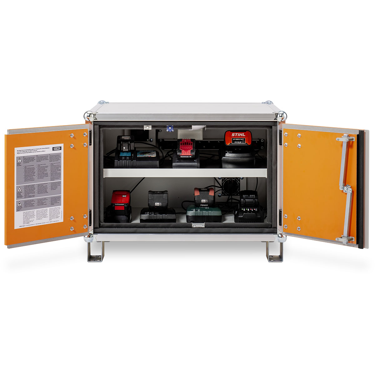 Feuer- und Explosionswiderstandfähiger Sicherheitsschrank, der speziell zur Lagerung und Laden von Lithium-Ionen-Batterien geeignet ist. zertifiziert nach VDMA Einheitsblatt 24994:2024-08 sicheres Lagern und Laden von Lithium-Ionen-Batterien bis 3 kWh – ideal für Anwendungen mit hohem Energiebedarf. höchste Sicherheit im Brandfall – hält einem Batteriebrand stand und gewährleistet kein Austreten von Flammen und Funken. modulares Baukastensystem – kombinier- und stapelbar mit weiteren lockEX-Baureihen für maximale Flexibilität und Erweiterbarkeit. patentrechtlich geschütztes Druckentlastungssystem lockEX propagationsverhindernde Lagerebenen – verhindern die Ausbreitung von Bränden zwischen einzelnen Batteriemodulen. Anbindung an zentrale Brandmeldeanlage (BMA) – für nahtlose Integration in bestehende Sicherheitsinfrastruktur. flexibel vernetzbares System – Kommunikation wahlweise über WLAN oder SMS für maximale Erreichbarkeit, auch ohne Internetverbindung