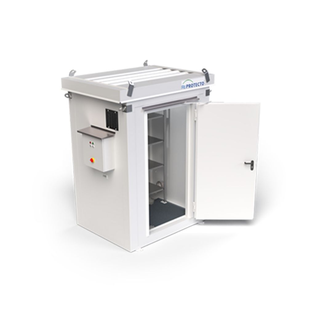 Der Brandschutzcontainer BLS mit DIBt-Zulassung von PROTECTO ist begehbar und aus feuerbeständigem Stahl gefertigt. Somit gewährleistet der F90 Container 90 Minuten lang Feuerwiderstand (F90) von innen nach außen bzw. von außen nach innen. Auch hat er eine integrierte Auffangwanne. Der F90 Container kann innen sowie außen problemlos aufgestellt werden.